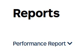 Reports are accessed from the main menu. You can select the report you want to view from the drop-down menu, which will be displayed just below the report title indicated with a down arrow: